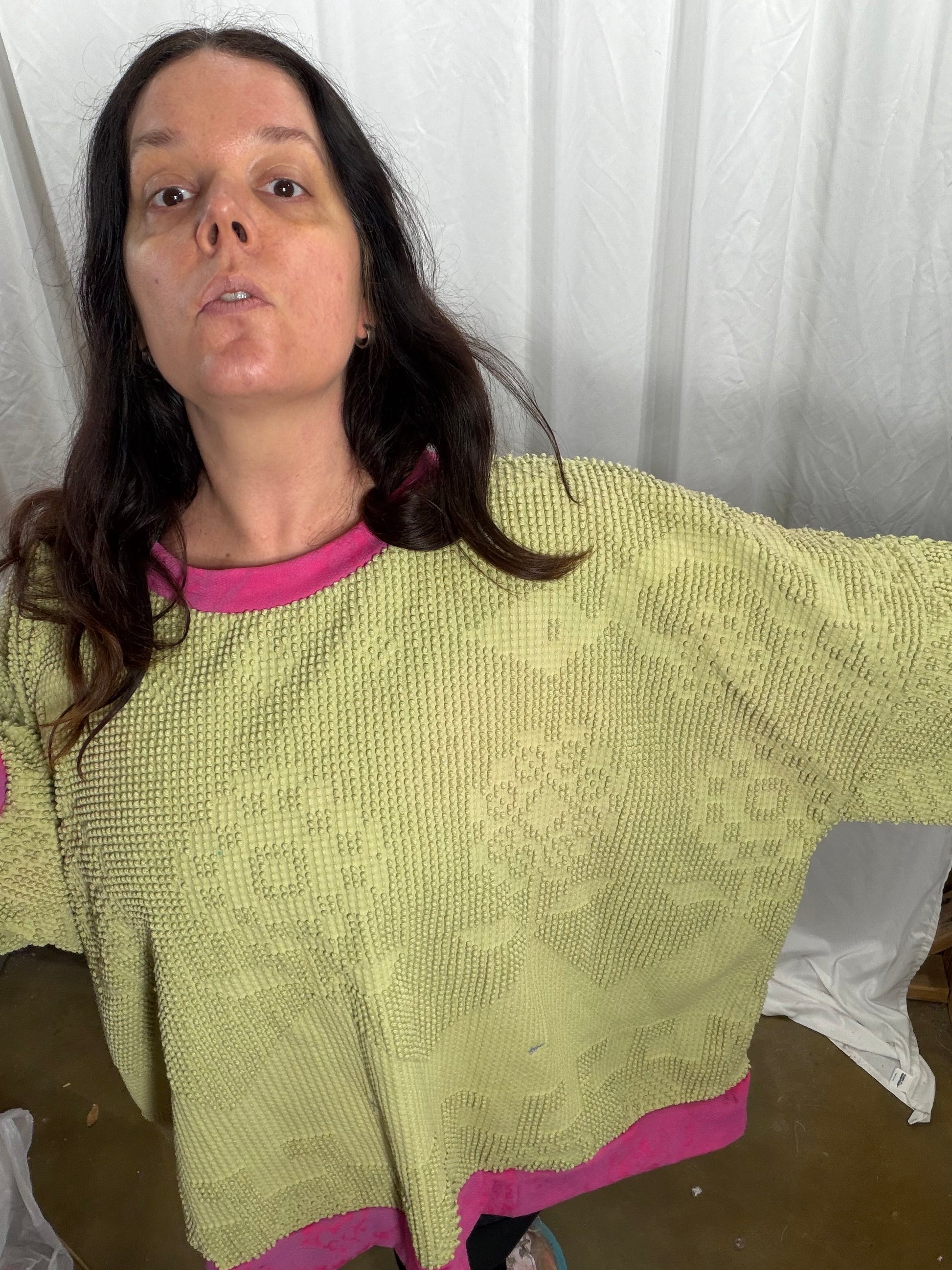Cotton chenille with cotton knit trim