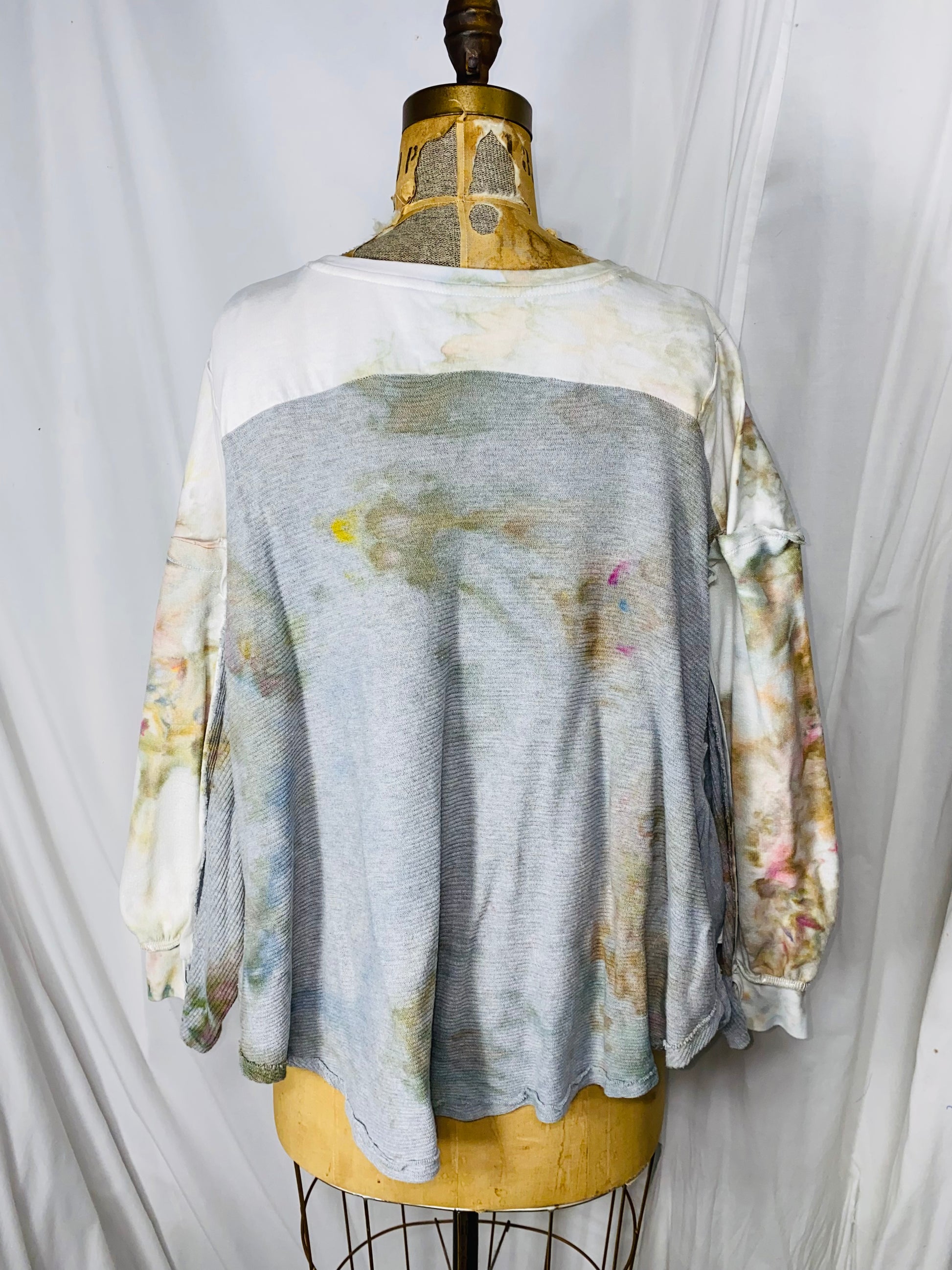 Cotton knit with French terry knit sleeves, lightweight sweater knit back