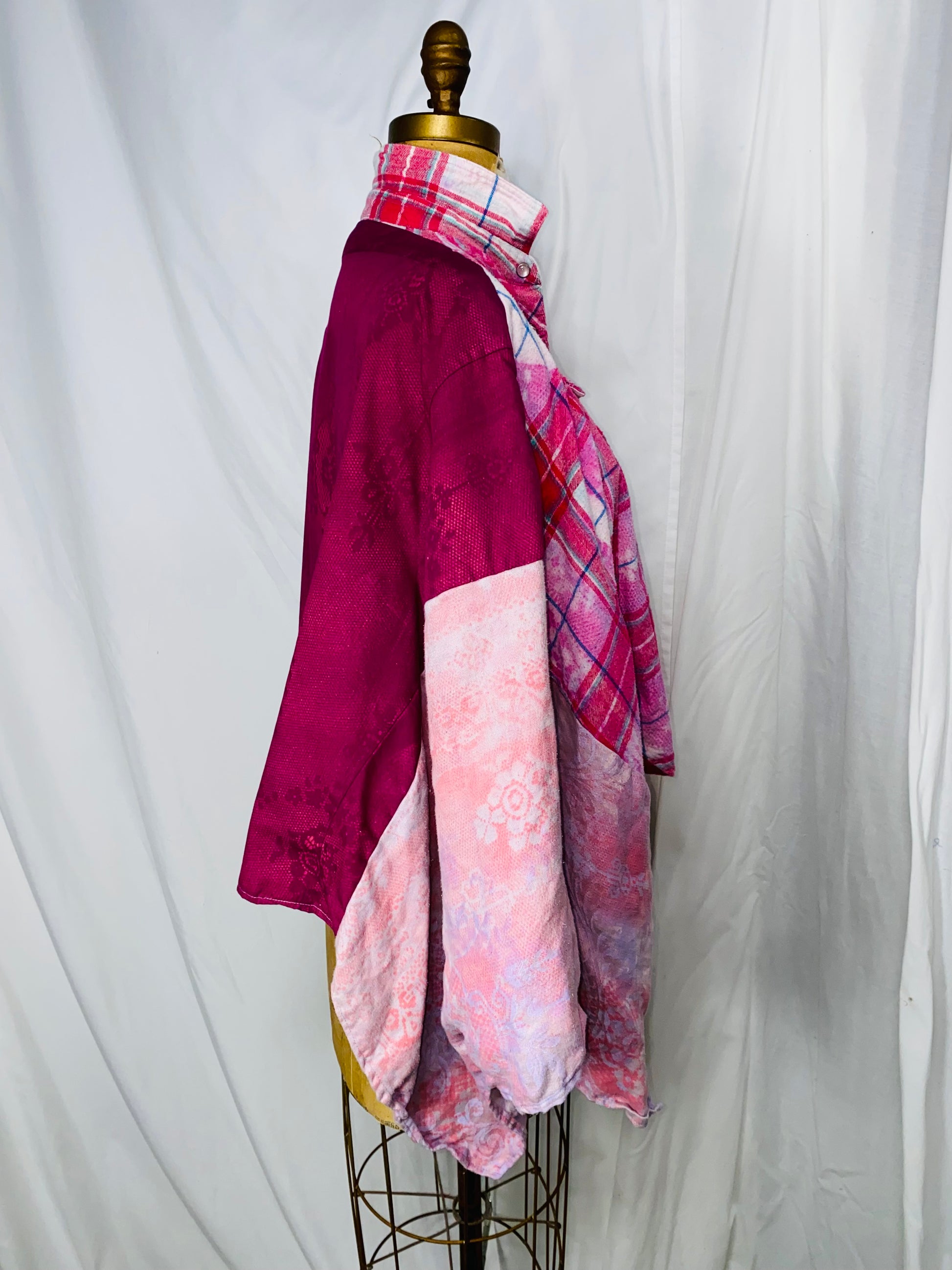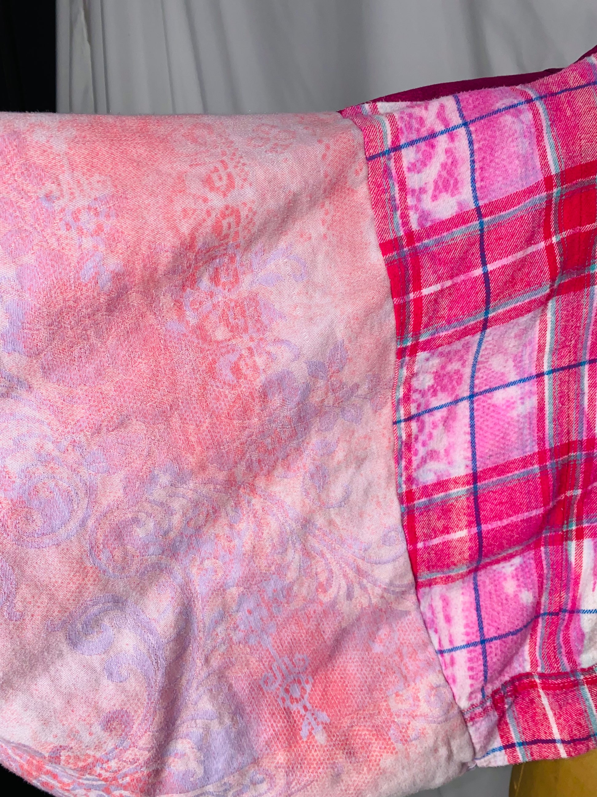 Flannel with cotton/linen sides, cotton broadcloth back, snap-front closure