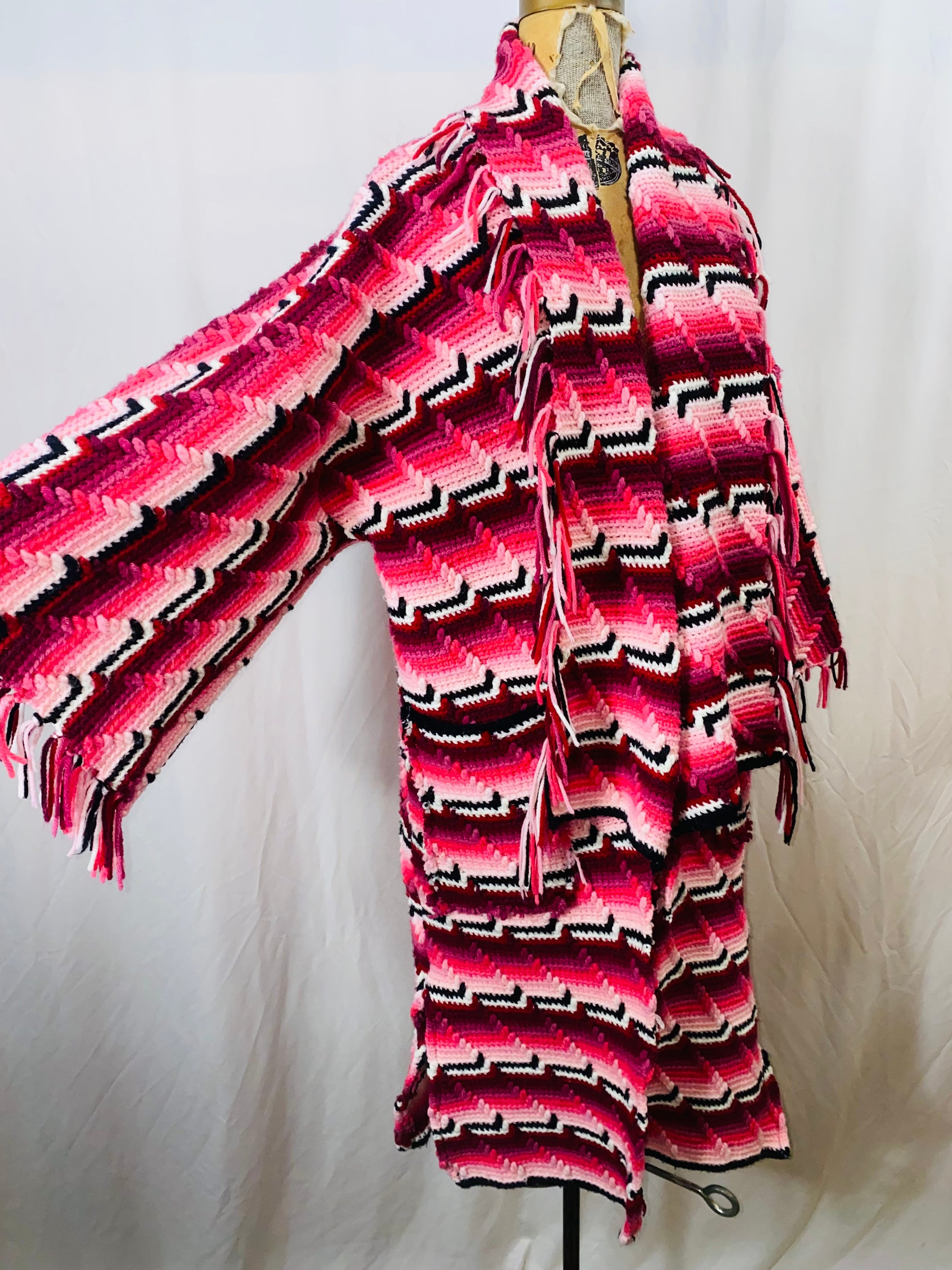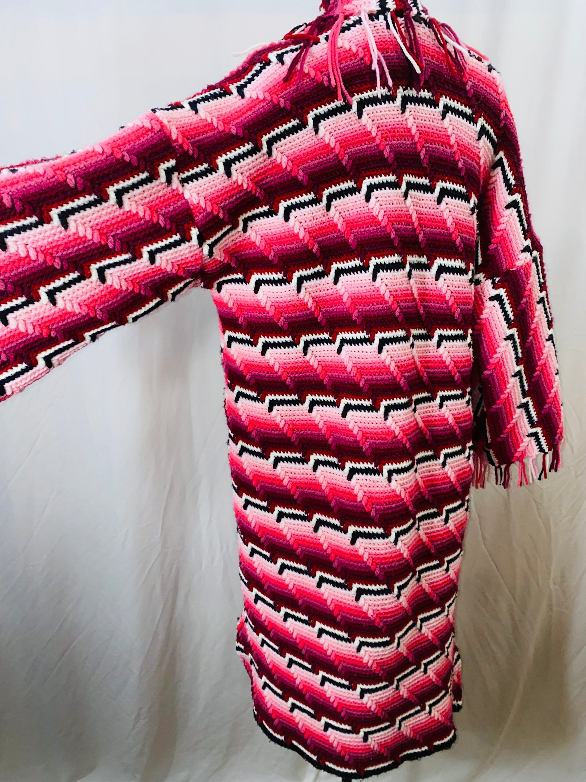 Cotton/acrylic blend gorgeous colorway with tassels and pockets