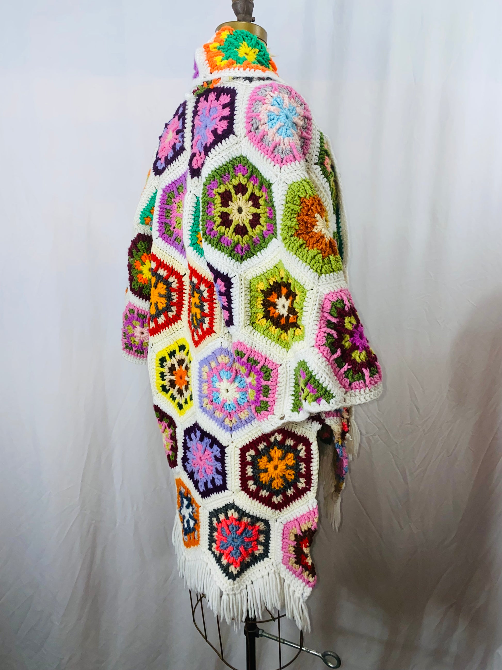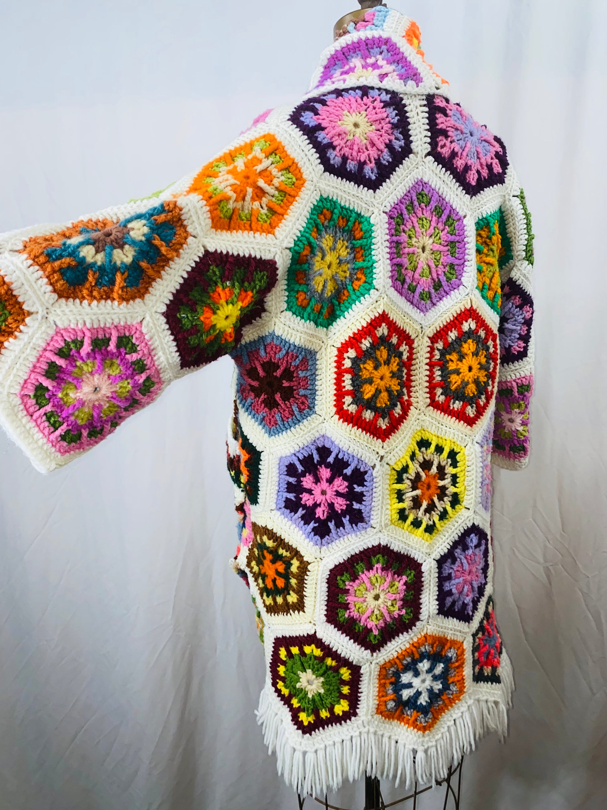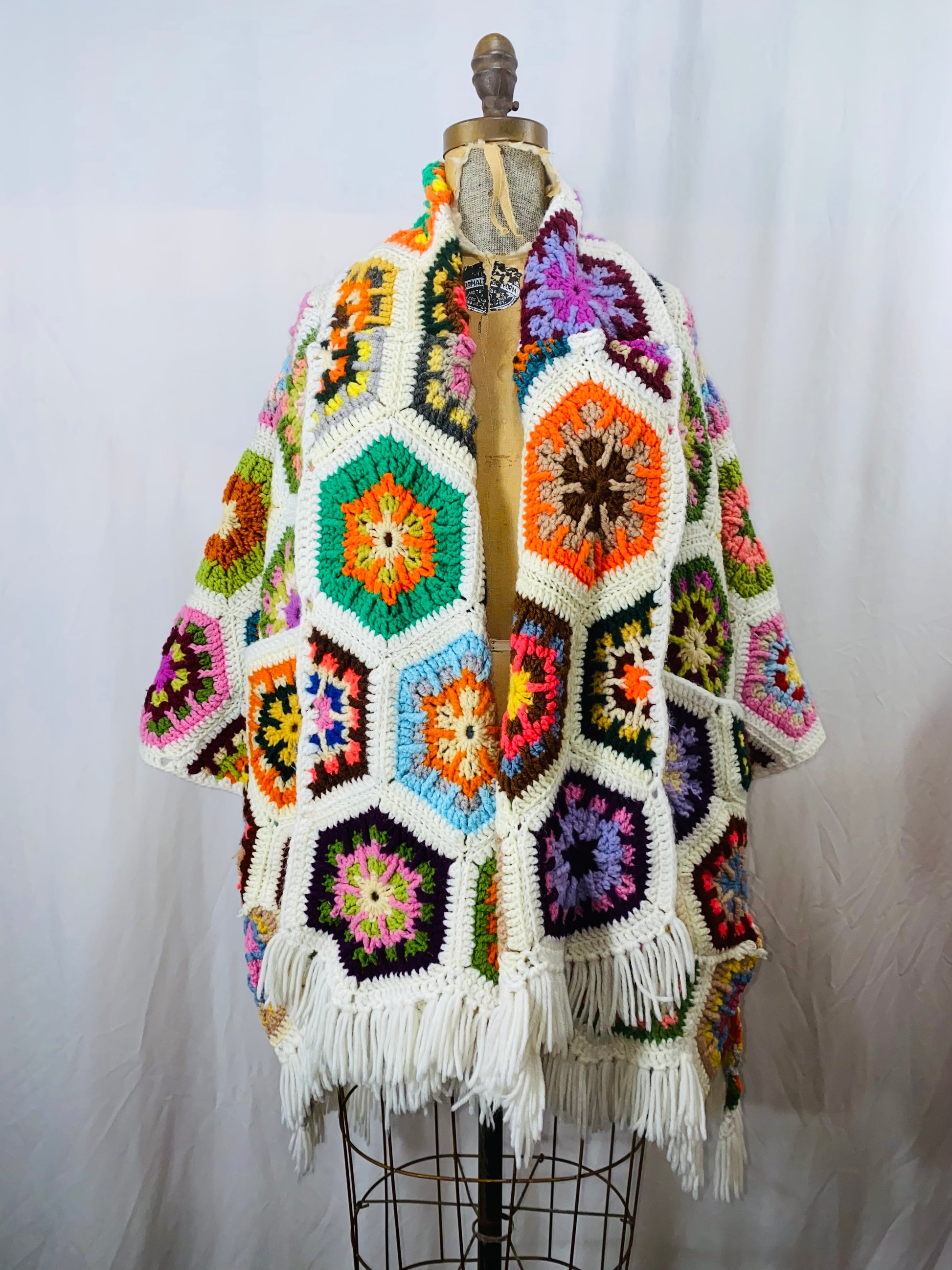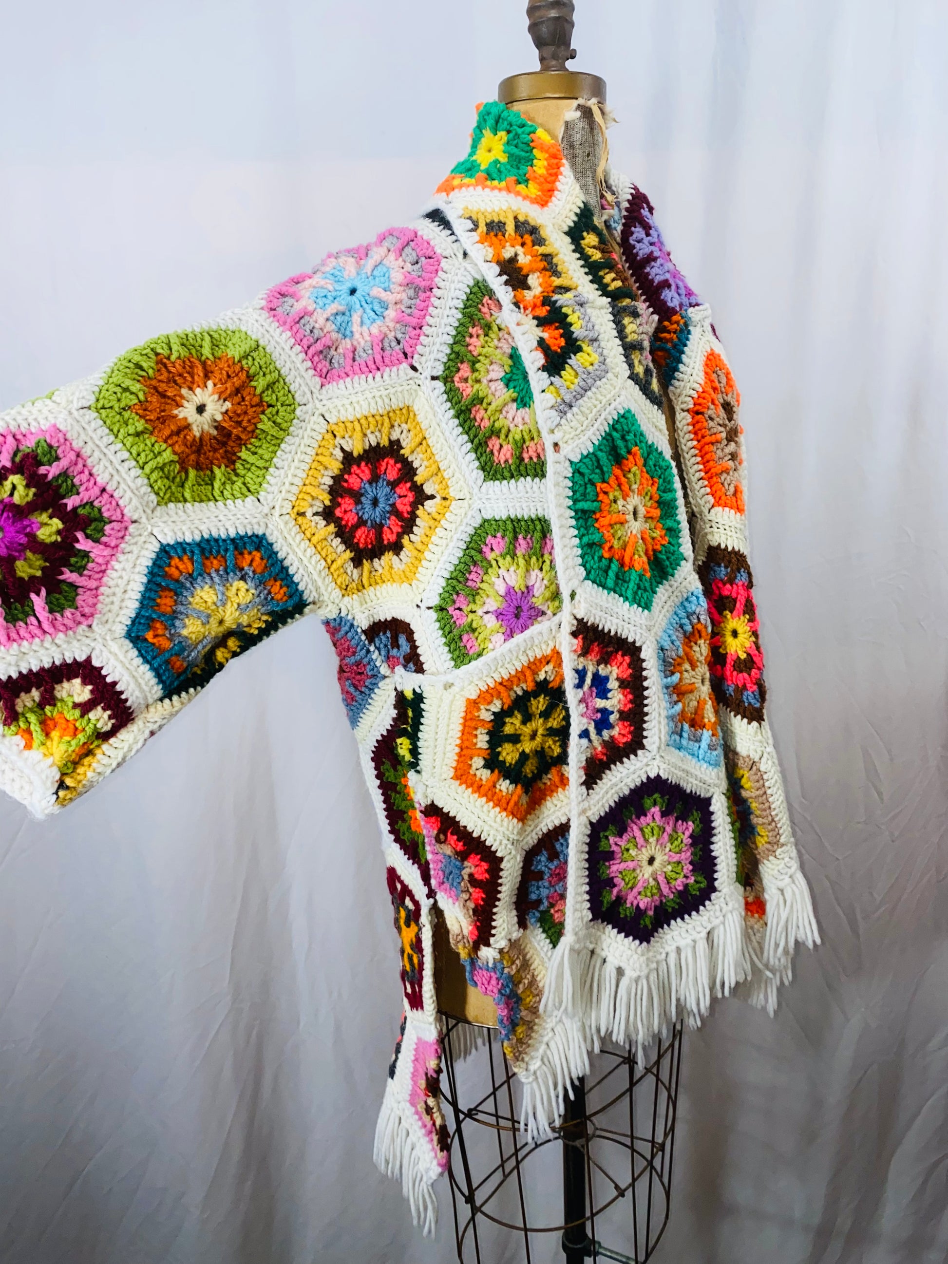Cotton/acrylic blend vintage crochet in a rare and colorful starburst pattern! Medium weight, front pockets