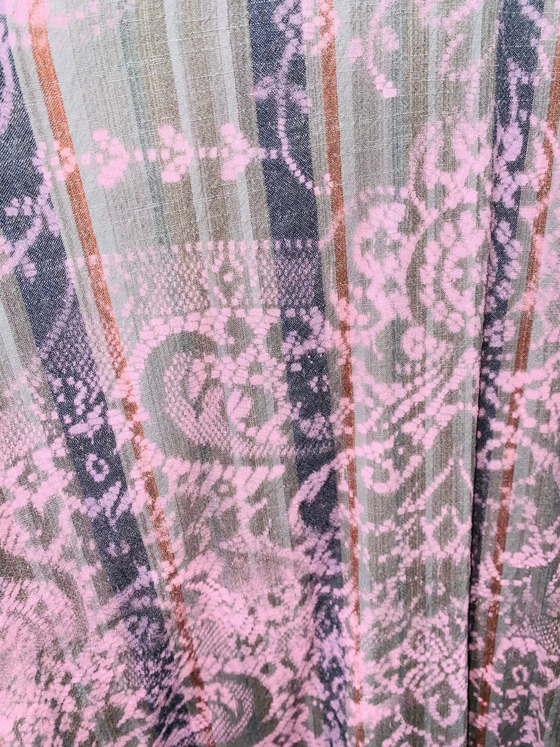 Flannel with woven cotton and gauze sleeves, on-seam pockets, can be worn as a dress, maxi top or duster